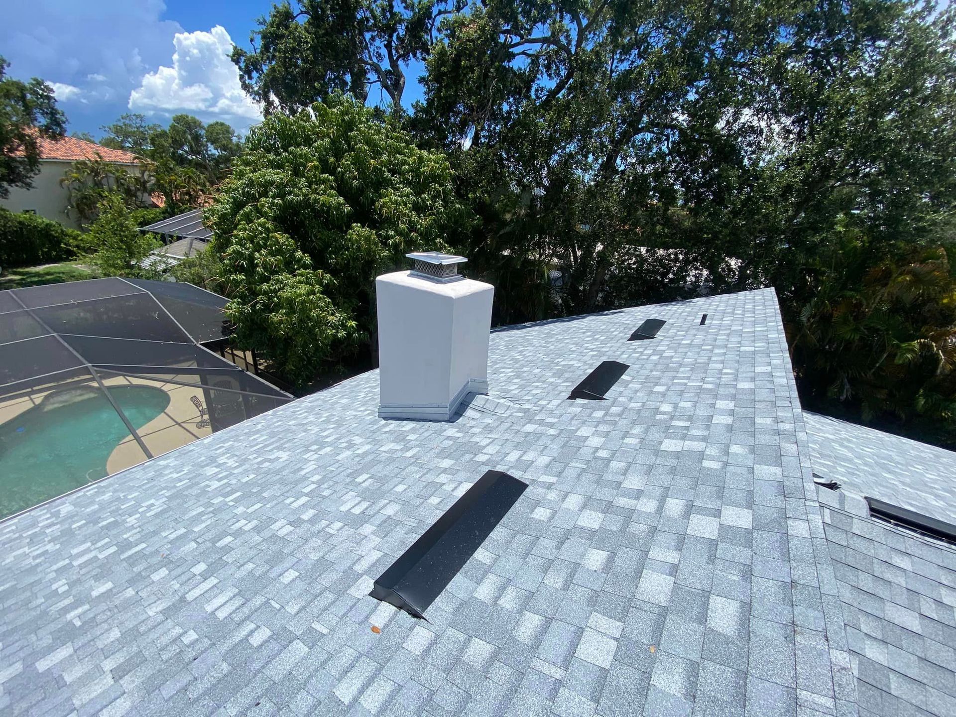 In Florida's humid climate, shingled roofs are often designed with algae and mildew-resistant properties, helping to maintain the roof's appearance.